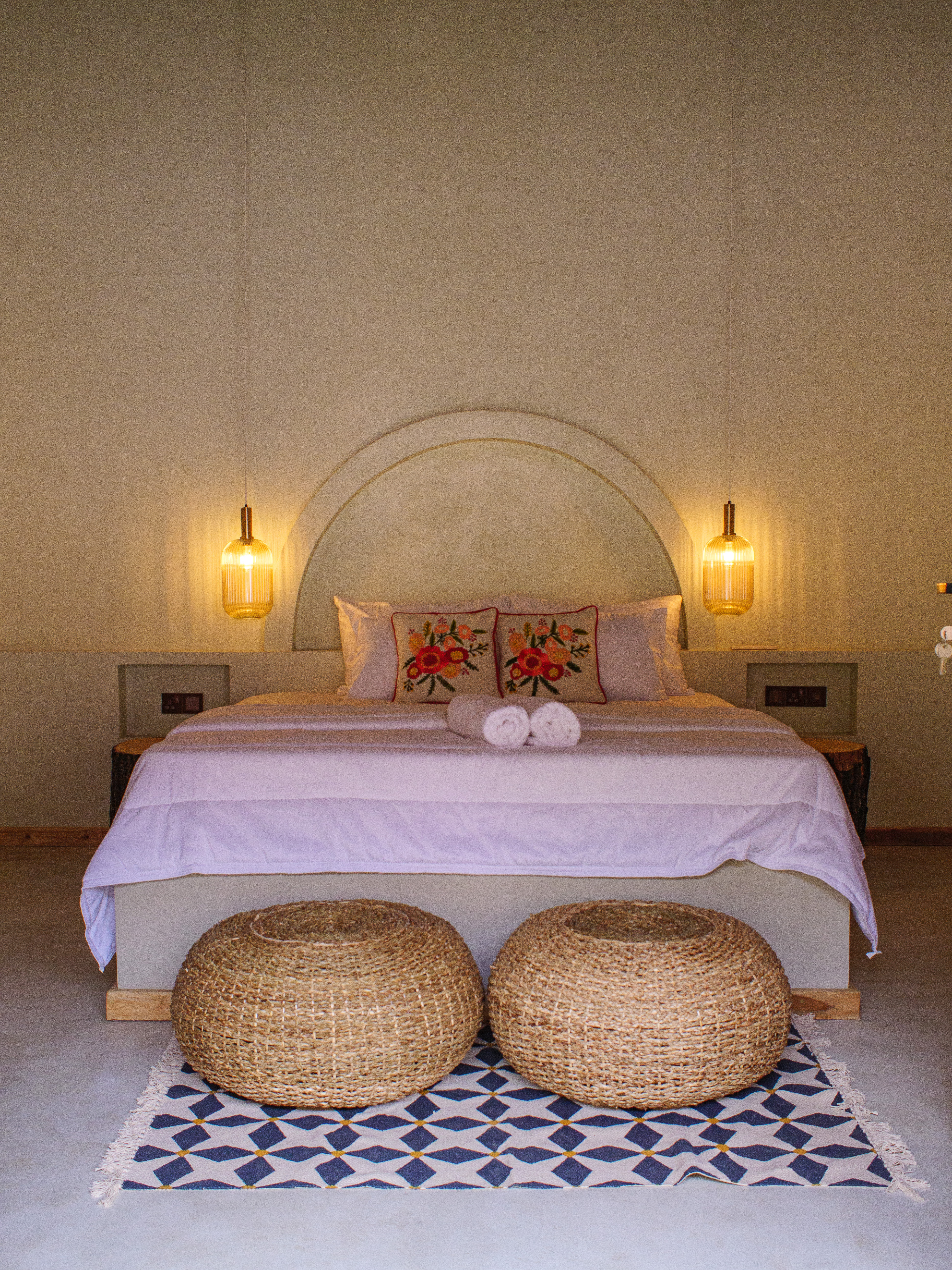 Pine and Palm has 3 Double Rooms, which offer a peaceful and stylish retreat just minutes from the surf and sands of Arugam Bay. Nestled within our tropical gardens and steps from the pool, each queen-sized room is thoughtfully designed for comfort and relaxation.